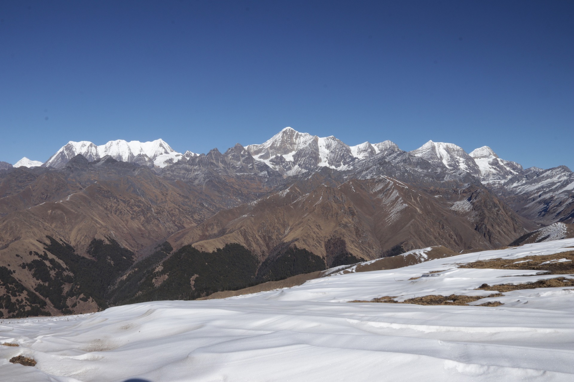 From this nice camp by the stream in the middle of nowhere, our walk starts on a pleasant trail towards a glacial valley leading north of Phokshumdo Khola confluence where another stream joins, then from here walking up on the long ridge slopes on the grazing land area, after a strenuous walk uphill reaching to the ridge top with views of another vast wide valley and of Kang-La pass which leads to Shey Gompa and our destination, here our overnight camp will be set on the nice wide grazing spot, this camp is christened with a name as ‘Snowfields Camp' by Peter Matthiessen in his classic novel “The Snow Leopard” .